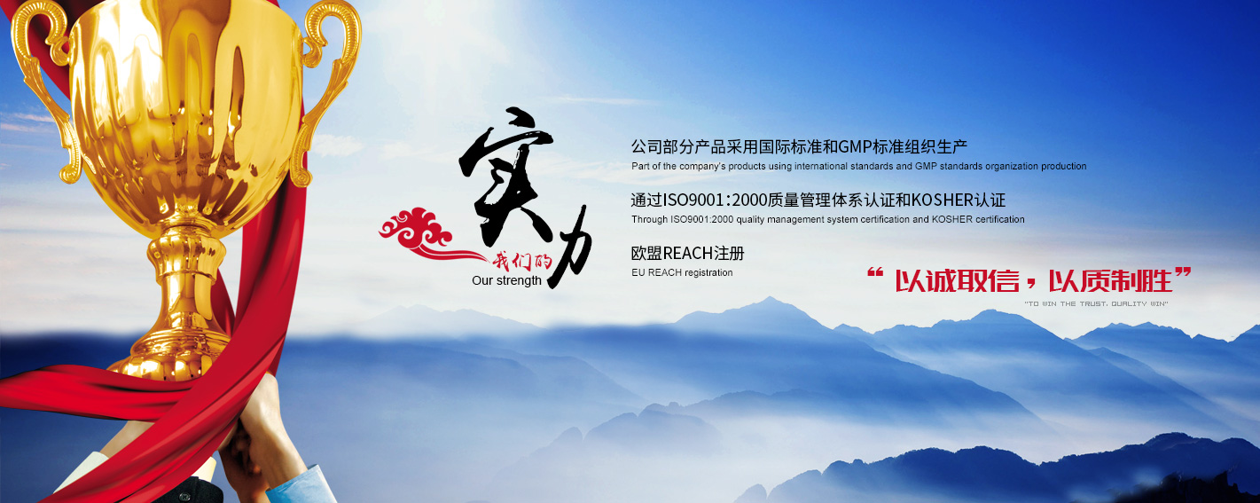 公司擁有現(xiàn)代化廠房、車間和物流倉(cāng)儲(chǔ)設(shè)施,配有先進(jìn)的生產(chǎn)設(shè)備及檢測(cè)儀器。公司部分產(chǎn)品采用國(guó)際標(biāo)準(zhǔn)和GMP標(biāo)準(zhǔn)組織生產(chǎn),并通過ISO9001:2000質(zhì)量管理體系認(rèn)證,歐盟REACH注冊(cè)。